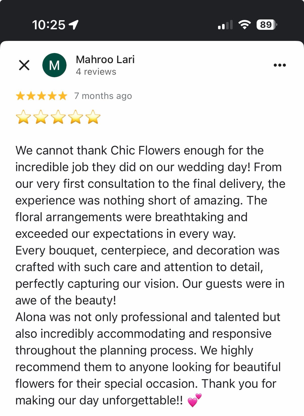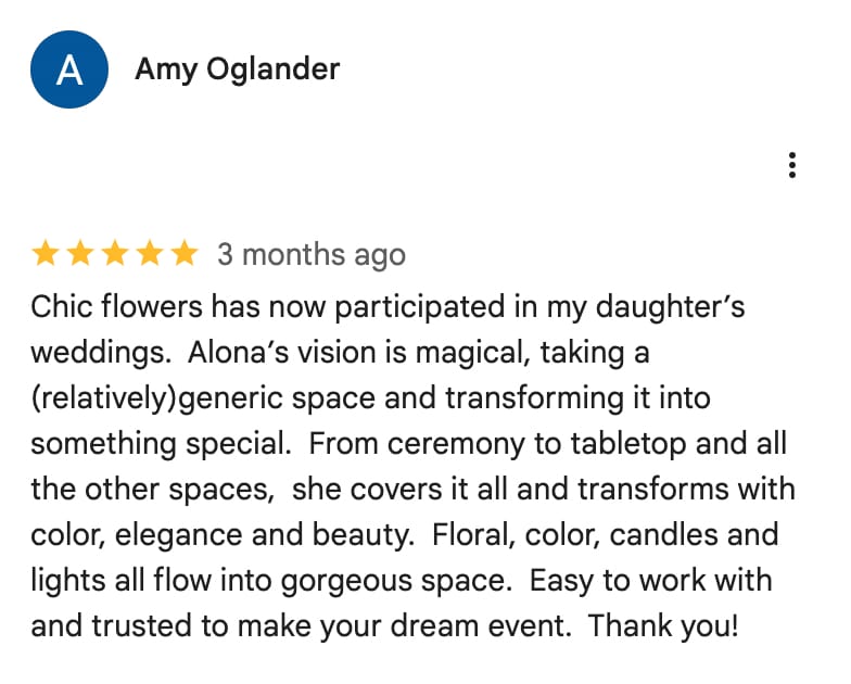 Hello & Welcome — I'm So Glad You're Here. I'm Alona, the creative force behind Chic Flowers — a floral design studio born from deep passion, aesthetic intuition, and a love for transforming spaces into art. To me, every client is like a flower — rare, layered, and unfolding in their own time. Thats why no two events I design ever look the same. My signature style blends French garden romance with a modern, editorial twist — think lush hydrangeas, airy peonies, sculptural calla lilies, and bold anthuriums.